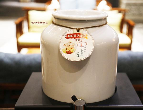 刚站稳脚步,一杯清香的菊花枸杞茶出现在面前,喝杯茶吧,清热润喉的。服务员亲切和蔼的话语和茶一样的香甜温暖。