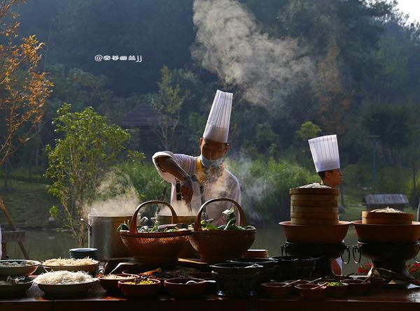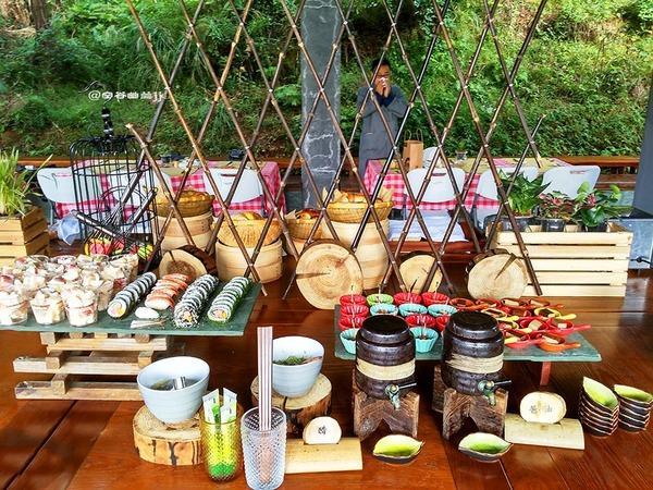 青山绿水、草地、竹林中,摆放着各式各样的美食,开始进餐吧。秘谷每周一才会在湖边用早餐,还得要天气好,真是天时地利人和,让我遇见了。