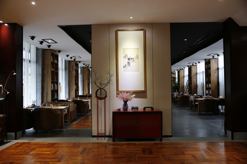 虽说错过了这里最美的梅花季,但却有了更多的时间静下心来体会这个充满浓浓爱意与温情的庭院。走进大堂便能看到陈列柜上的各种藏品,有汉代的陶器、战国的印文陶,大堂的佛龛上还陈列着隋朝的青砖、唐朝佛像的莲花底座,书吧的墙上亦挂着当代许多大师作品。