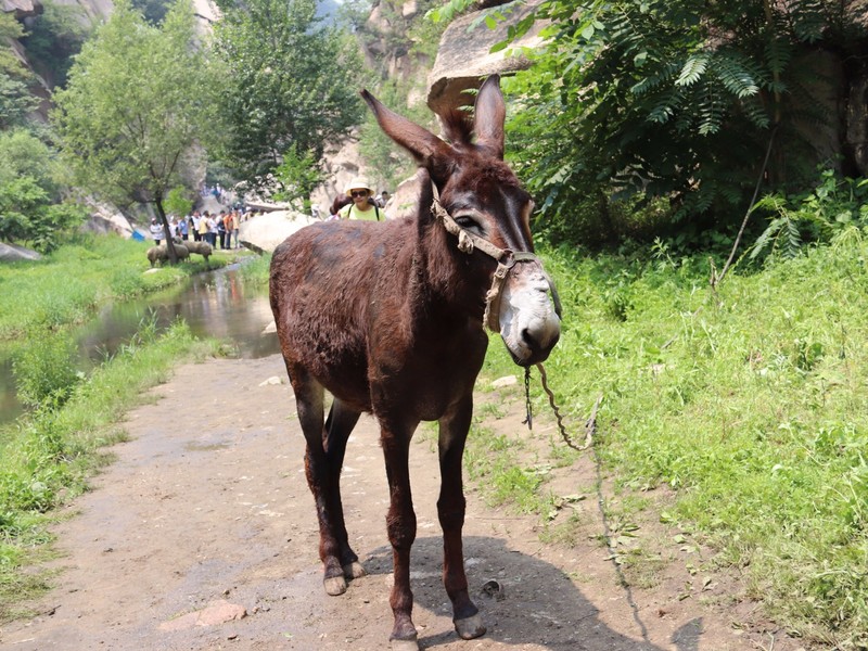 一路上大朋友小朋友还有叔叔阿姨们,那叫一个热闹,喜欢在人多出处的聚集,也喜欢安静的独处,喜欢山水间的静谧,更喜欢穿越在山间的人们,一路淌着小河,踩着石头,看着这眼底的景色,我们遇见大白鹅,遇见小毛驴,遇见友爱的小伙伴,相互帮助,相互谦让。其实,不必着急前行,美景就在我们路过的地方。汗如雨下的感觉,一次美好的出游!
