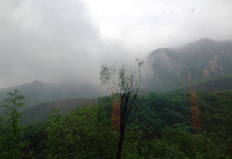 进山了,雨也停了,窗户外边云雾缭绕在山间,,,