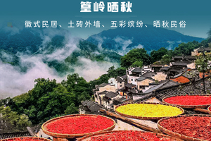 【篁岭晒秋】 挂在山崖上的篁岭古村,“地无三尺平”,数百栋徽派民居在百米落差的坡面错落排布,每当日出山头,晨曦映照,整个山间房屋晒架上五彩缤纷的丰收果实,绘就出美丽的“晒秋”农俗景观。春晒茶叶、夏晒山蕨、秋晒果蔬、冬晒乡俗……一年四季延绵有续。“晒秋”是篁岭古村500年来延续至今的晒谷物特色民俗景象。它反映了以篁岭为代表的山居民众原生态的晒物农俗,是劳动人民对丰收喜庆和未来生活所赋予的质朴美好的期待,并逐渐沉积为一种民俗和文化。