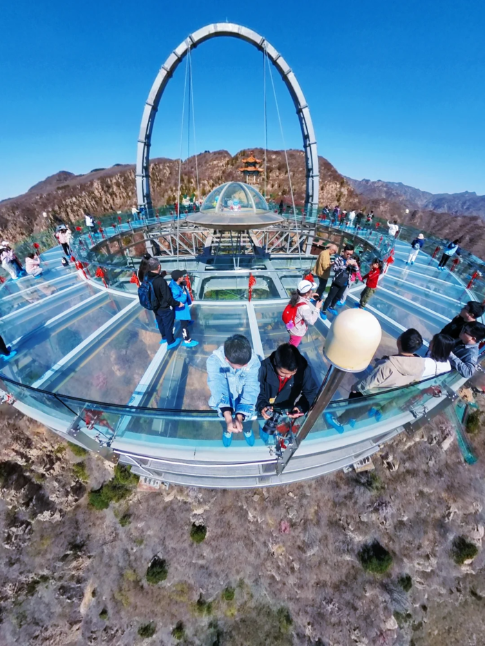 平谷石林峡悬空玻璃“UFO”观景台面积最大,整座观景台建筑面积713平米,可载员面积434平米,平台海拔 800 米,距崖底约 400 米,绝对可以让游客心跳加速、玩的过瘾。石林峡悬空玻璃“UFO”观景台安全性高,观景台地面采用36毫米防弹玻璃,是由透明防弹胶片将三片高强度玻璃粘接在一起制成的。