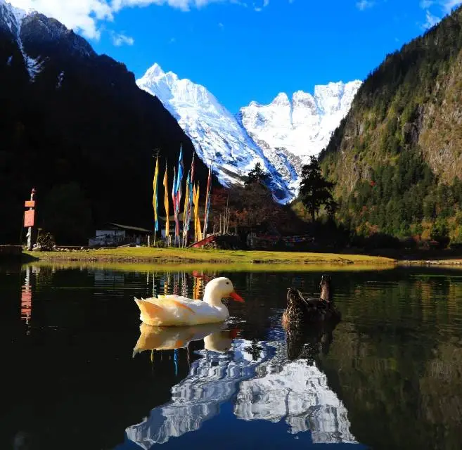 早餐后从丽江古城出发前往詹姆斯•希尔顿所著《消失的地平线》中纪录的大香格里拉。途经丽香高速约1.5小时抵达香格里拉小中甸牧场,随后途径依拉草原纳帕海景区前往尼西或奔子栏中餐,午餐后驱车抵达金沙江月亮湾,金沙江遭遇了一座浑圆的金字塔型山峰,金色的江水于是绕着山峰流出了一个标准的“倒Ω”形;游览完月亮湾后进入白茫雪山腹地,穿越隧道经德钦县抵达尼农村进入雨崩村。随后前往客栈办理入住,如果状态不错的情况下,可以漫步在村子里,欣赏雨崩村原生态风光。
