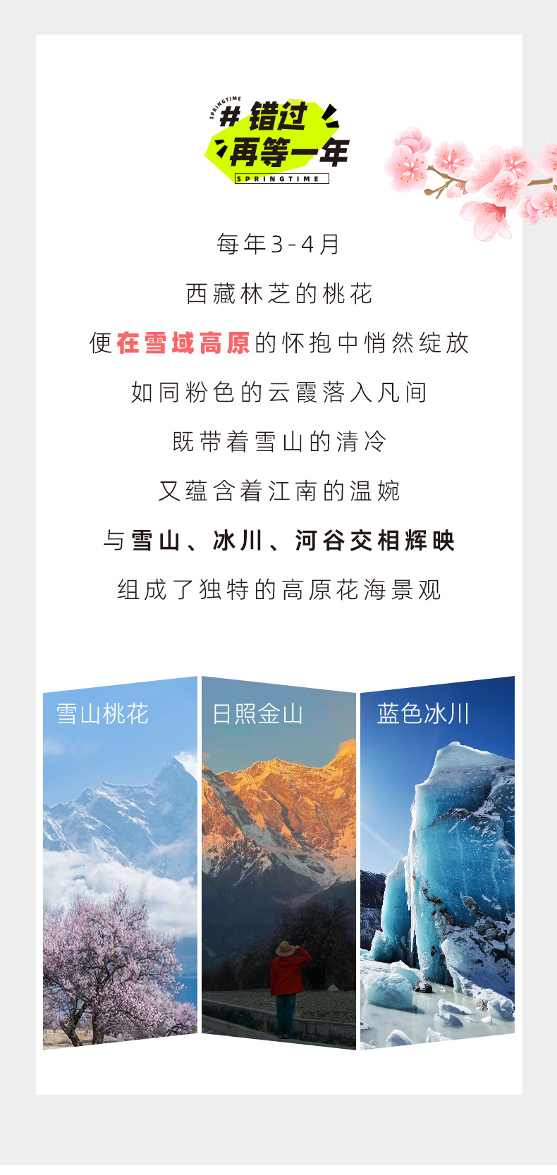 春季限定,拉萨(或第2天林芝)集合,拉萨(或林芝)完团,连发8期,期期成行,只在对的时间去对的地方。