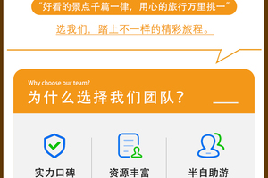 *本活动属于半自助游户外活动,领队安排行程不含景区内导游讲解,费用包含以外的自主费用自理;本团为纯玩团,全程不进购物店,没有任何形式购物环节,行程中也不留购物时间,敬请谅解。