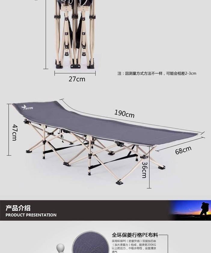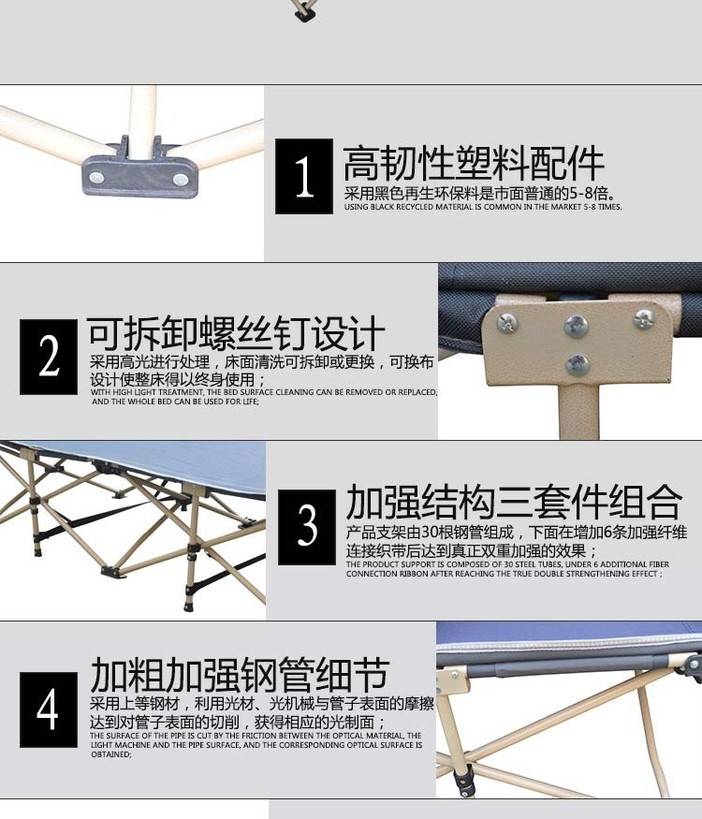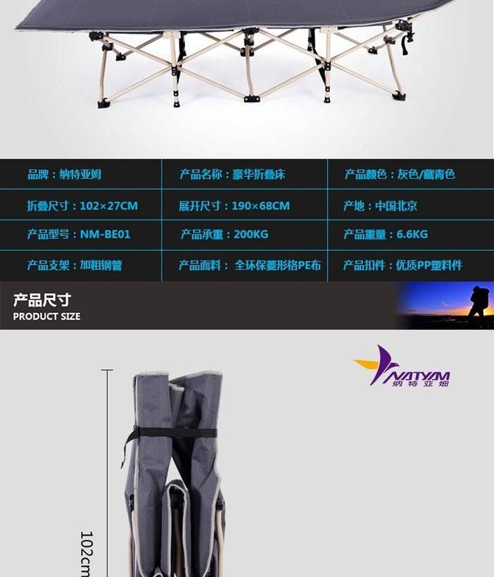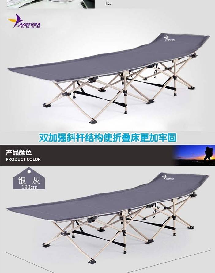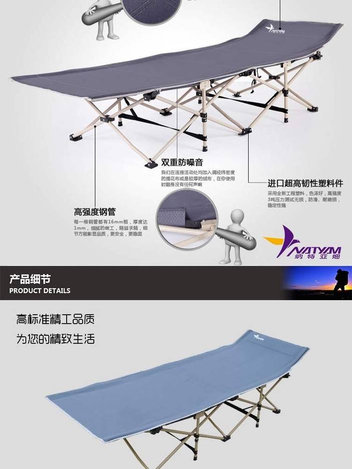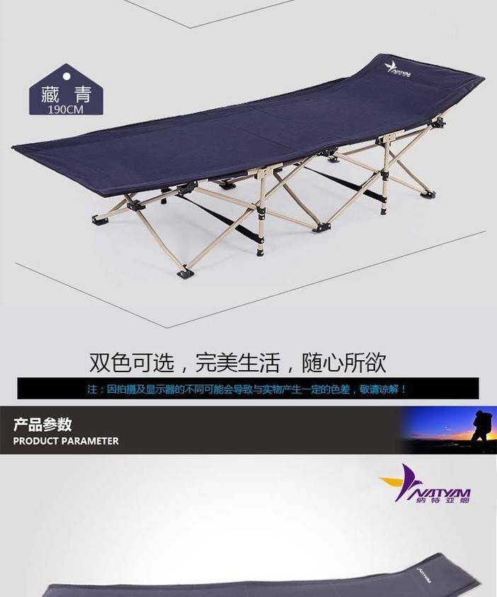 纳特亚姆户外折叠床躺椅午休床午睡床便携折叠椅单人简易行军床儿童医院陪护床靠椅 190cm 藏青色