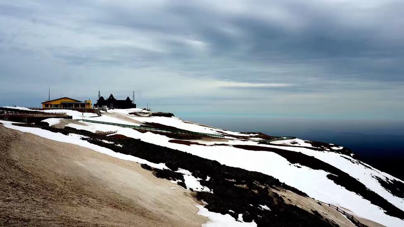 我们七点半到达长白山山脚下,拿好票以后,进去坐景区大巴车,大巴车带我们上到中转平台。到了平台后转坐开往长白山主峰的车。在这里要说一下,长白上其实跟九寨沟有点像,其实都不太用走的,全程各景点之间都是坐车去。因为长白山毕竟是活火山,而且还没开发完全,车开的地方还是有野兽的,据说哈,虽然我还挺想看见熊瞎子突然跑出来的。