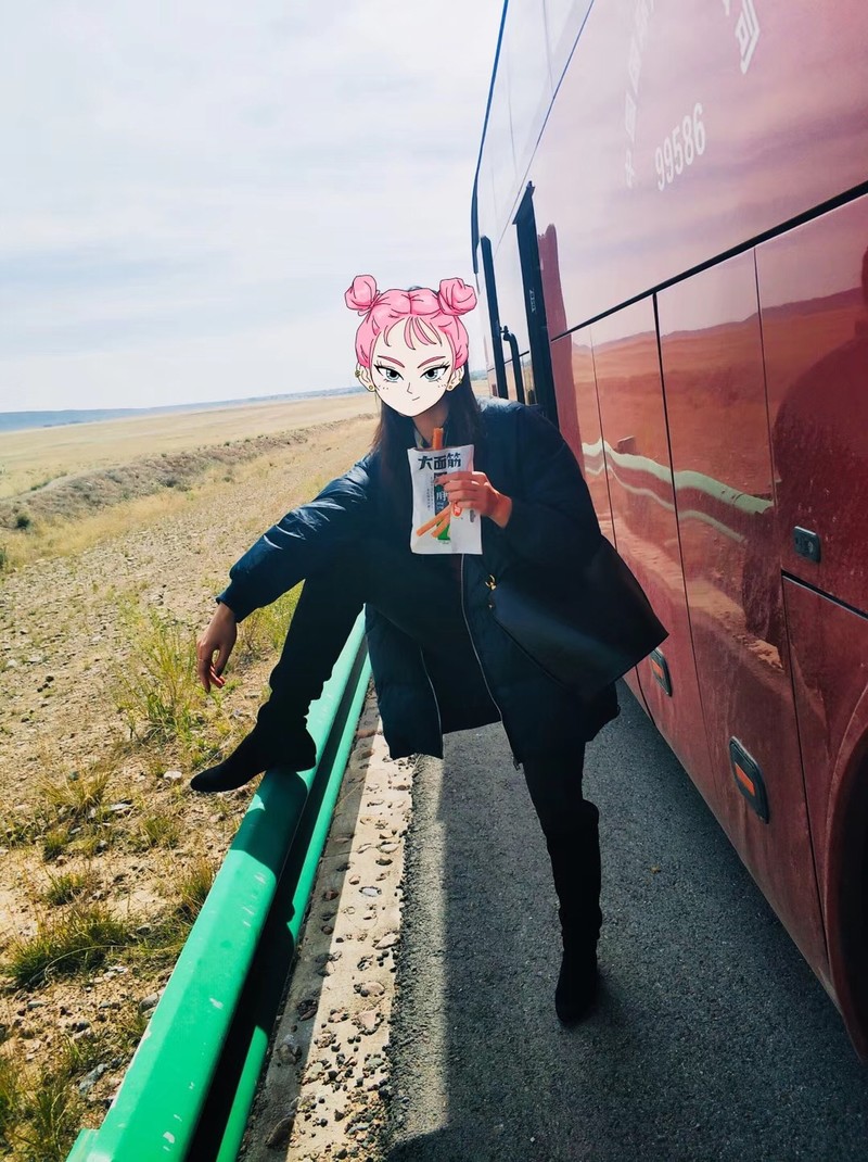 小插曲...大巴坏在了去茶卡盐湖的路上。。。。我便开始了狂妄不羁的吃起了“卫龙”哈哈哈哈