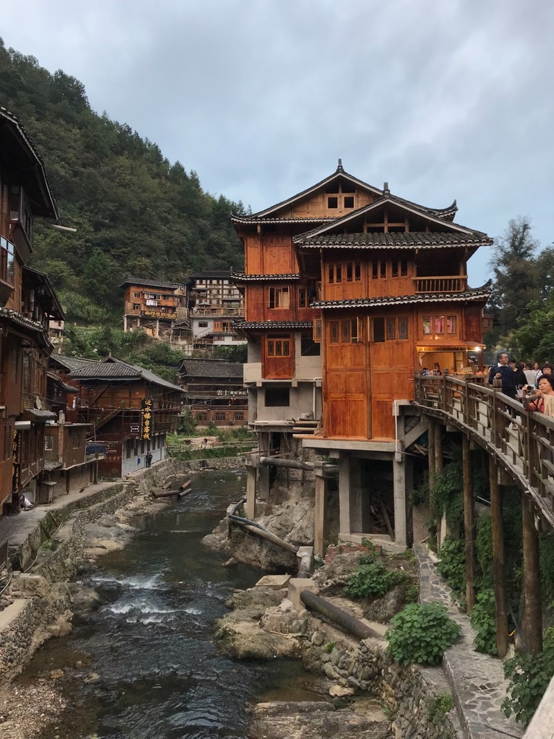 前往【西江千户苗寨】景区,大约下午快六点到达目的地。住在了传说中的木质吊脚楼“悦来客栈”。