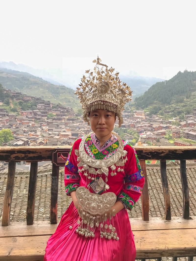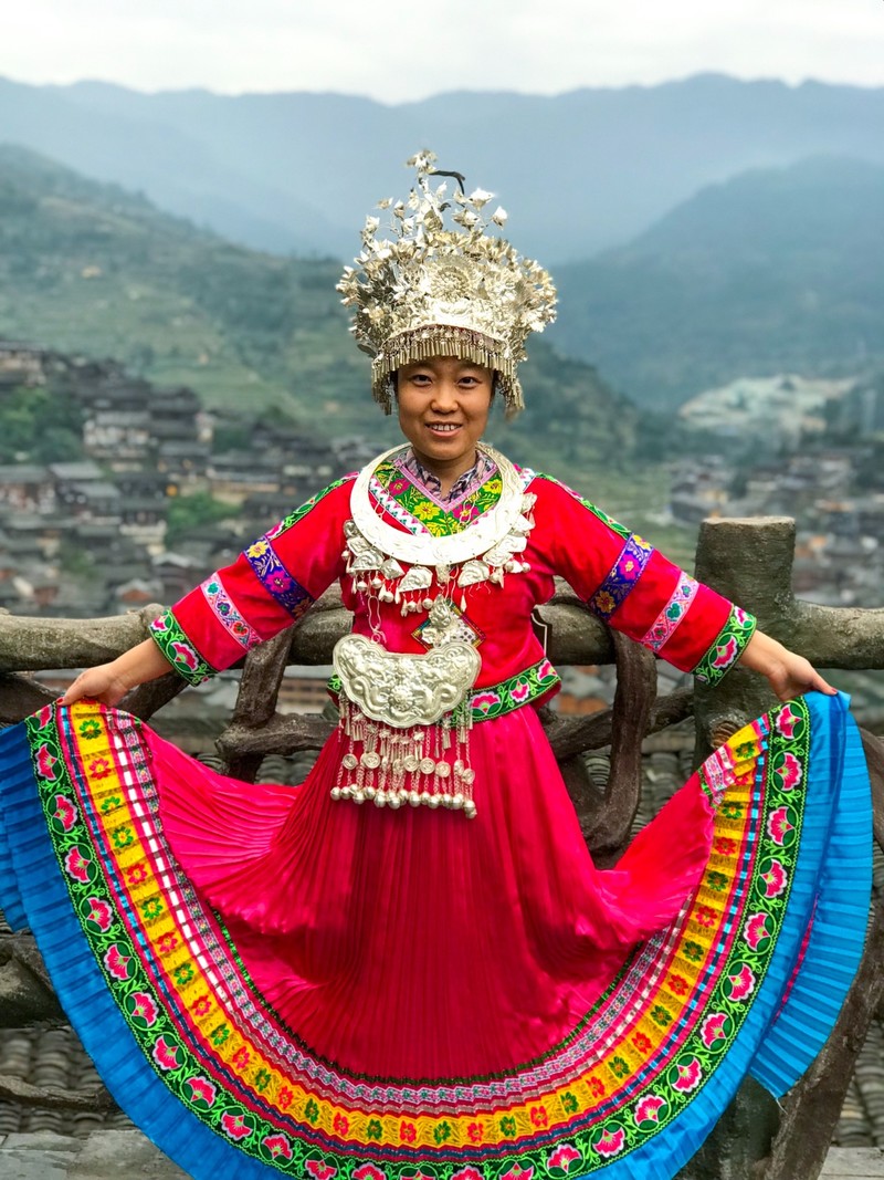 体验了下苗族服装,穿上衣服,仿佛穿越了时空,深觉自己前世一定是个苗族人。