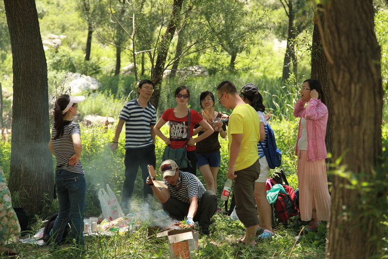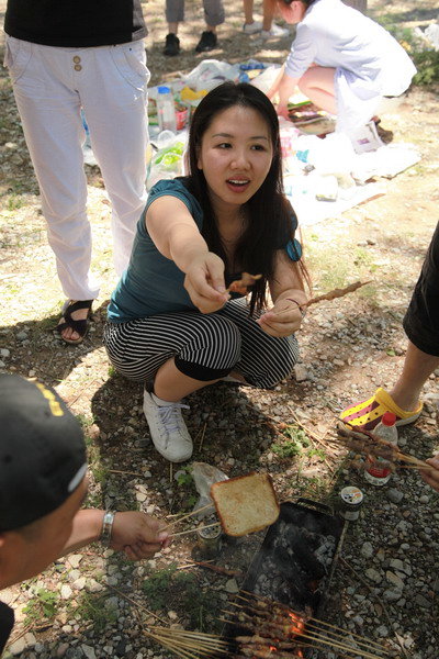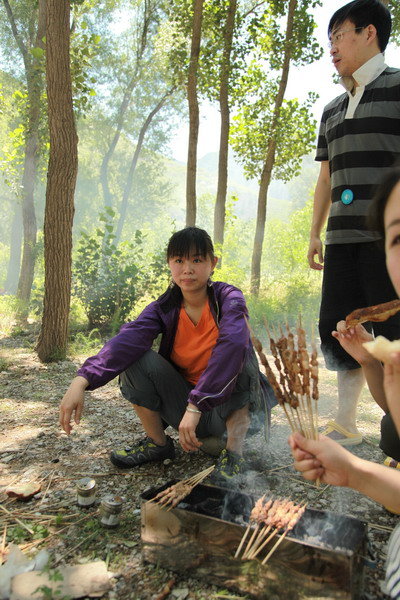 穿紫衣服的这位女孩,一直在为我们二队烤串,自己却很少吃,幸苦了。