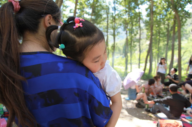 戏水完毕,小朋友在妈妈肩上睡着了,活动也接近尾声了。