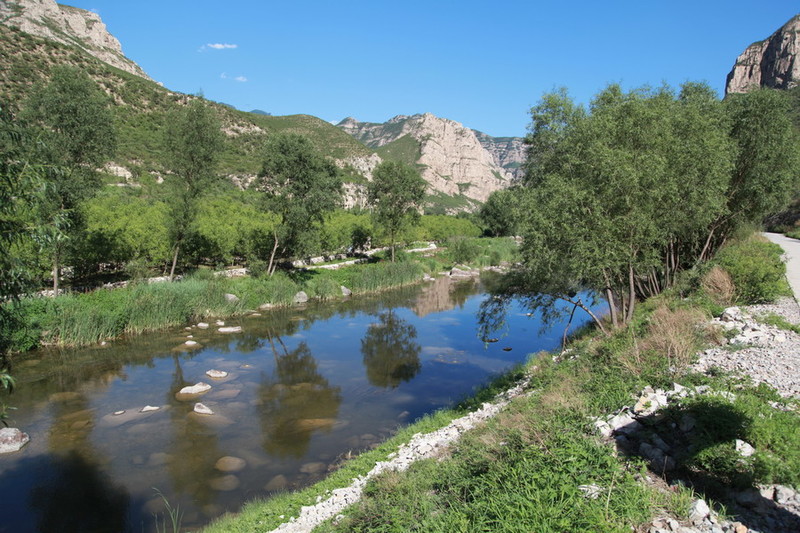 今天走过发现路修好了,天空还是那么蓝,树也还是那么绿,只是水没以前清和多了。很多河段都干了。