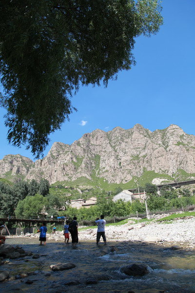 树荫下,凉风徐徐,水里面早已有人在那里戏水拍照了