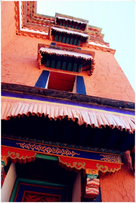 【米拉日巴佛阁】藏传佛教白教的代表建筑,藏区仅有的一座九层碉楼式佛阁。外观宏伟、色彩浓烈,内部金碧辉煌。神秘、虔诚