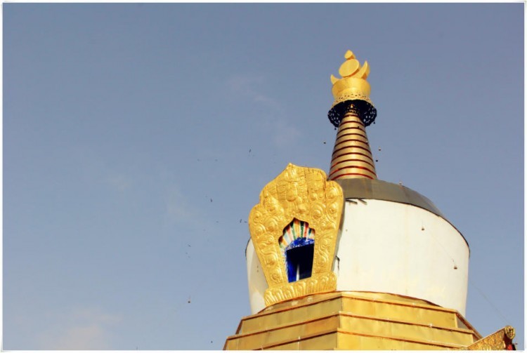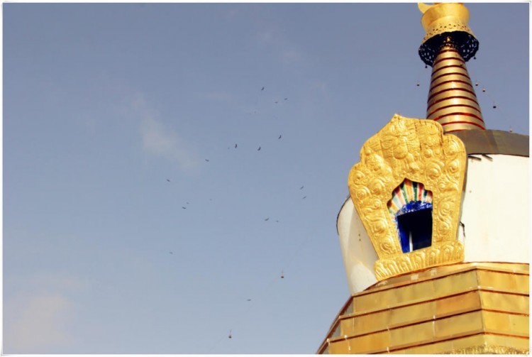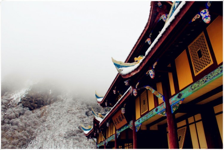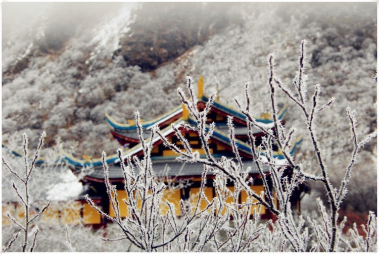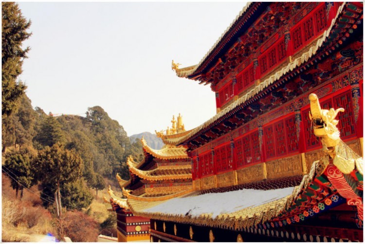 朝阳正在早课大殿的金顶上丝丝飘洒。