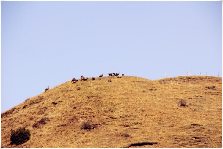 天葬台是朗木寺海拔最高的地方,秃鹫早早就等在那里,清晨刚刚葬了两人,去尊重民族文化,天葬台没有任何建筑和规模,就像它所代表的人的生死一样,简单的不能再简单了,只见一堆铁锤利器白骨和碎布。我不是小清新,也不嗜重口,在天葬台感觉着无数个灵魂在周遭游弋,尤生敬畏感。