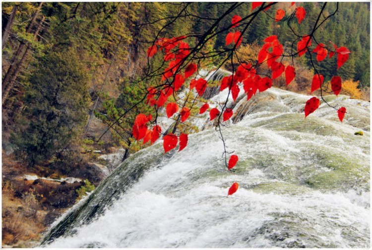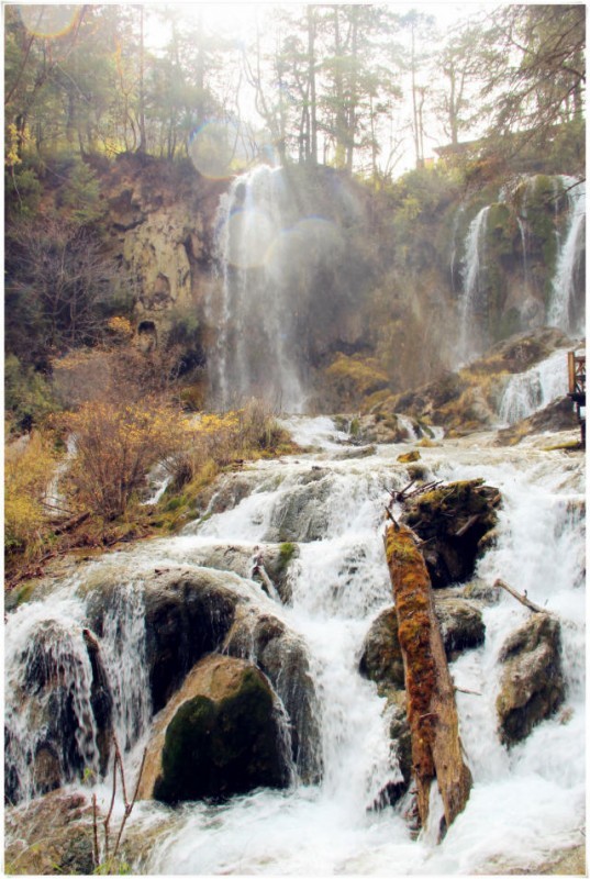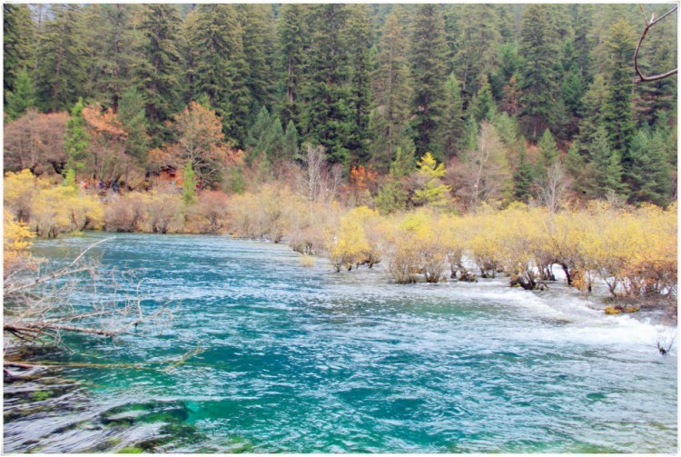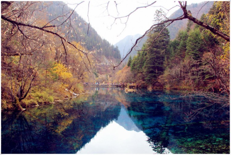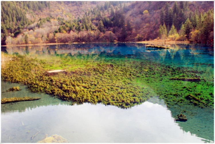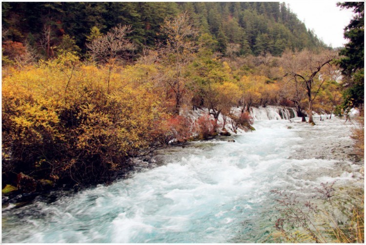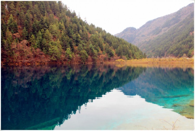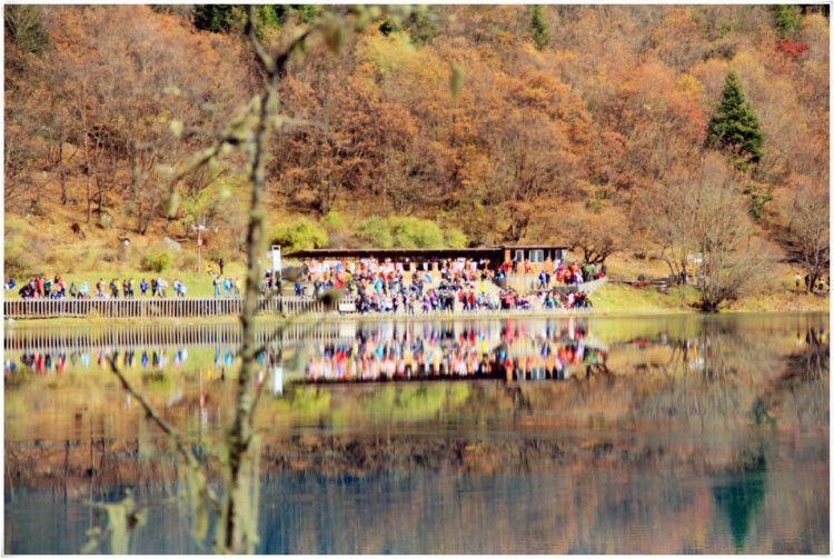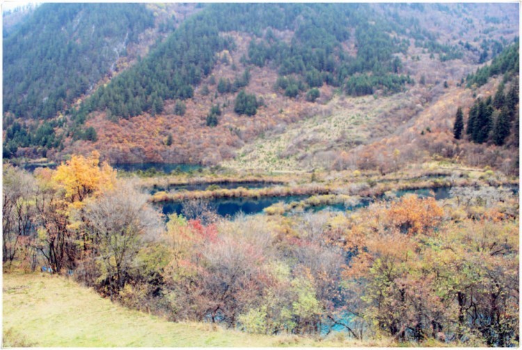 11月11日 色即是秋。金秋九寨,红、黄、蓝、绿、白、黑。九寨沟一个神奇的地方,相机偷不走美景的地方,原始森林天然大氧吧吸的我真醉了。九寨一绝梦幻五花海,孔雀河道水草萋萋,倒影、水波、阳光、落叶的完美结合。有晴看水阴看山,半晴半阴看云烟。