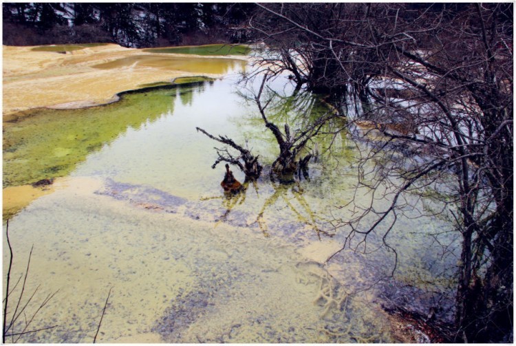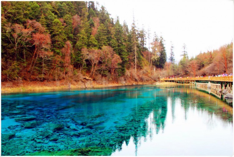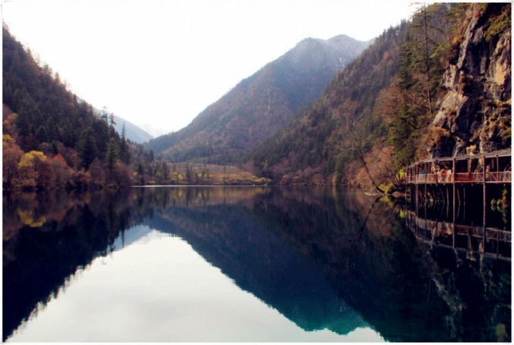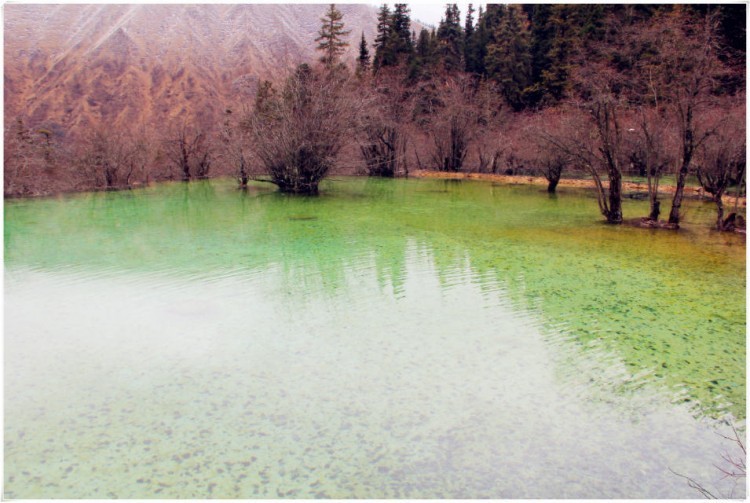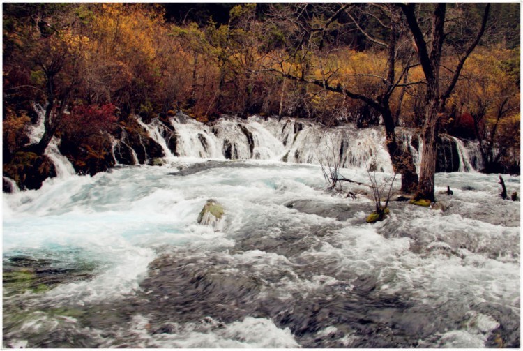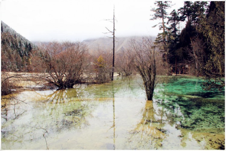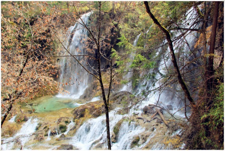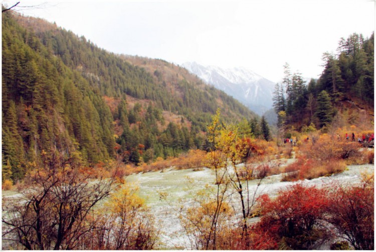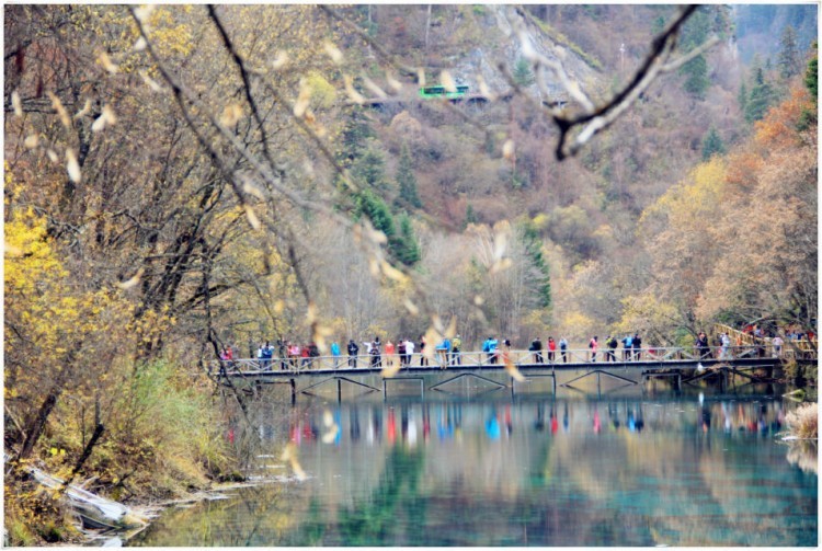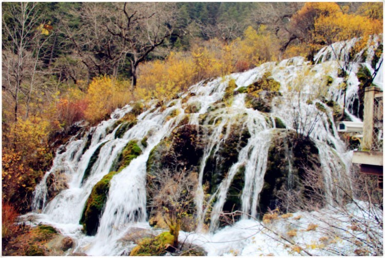 11月11日 色即是秋。金秋九寨,红、黄、蓝、绿、白、黑。九寨沟一个神奇的地方,相机偷不走美景的地方,原始森林天然大氧吧吸的我真醉了。九寨一绝梦幻五花海,孔雀河道水草萋萋,倒影、水波、阳光、落叶的完美结合。有晴看水阴看山,半晴半阴看云烟。