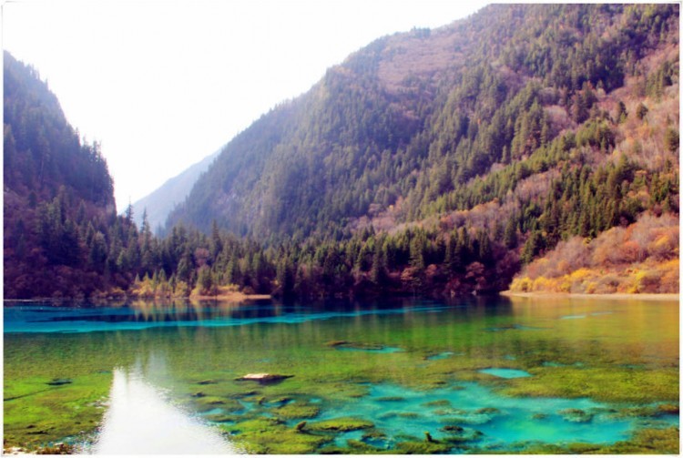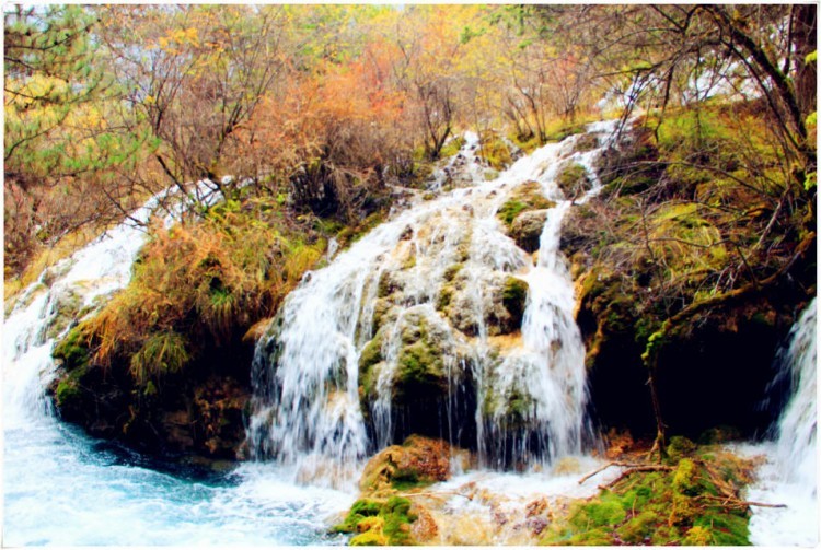 色即是秋。金秋九寨,红、黄、蓝、绿、白、黑。九寨沟一个神奇的地方,相机偷不走美景的地方,原始森林天然大氧吧吸的我真醉了。九寨一绝梦幻五花海,孔雀河道水草萋萋,倒影、水波、阳光、落叶的完美结合。有晴看水阴看山,半晴半阴看云烟。
