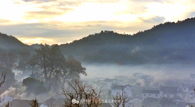 清晨中国最圆的村落菊径。背山面水,依山绕水,同时却不在“反弓水”位,可谓“得山得水”、“人丁两旺”。