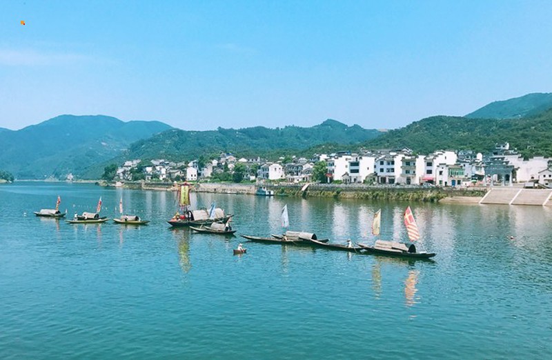 新安江以中国独特的徽文化与自然风光、古村落的美妙结合著称于世。现两岸生态环境**,呈现高山林、中山茶、低山果、水中鱼立体生态格局,与掩映其间的古村落、古民居交相辉映,构成一幅秀丽的世外桃源图。