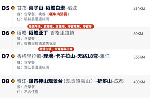 4、门票:毕棚沟观光车60元/人(必须)+电瓶车20-30元/人(分段计费、可选),稻城亚丁观光车120元/人(必须)+稻城亚丁游览车70元/往返(可选),卓克基土司官寨门票60元/人(可选),色达预约48-168元/人,报名后请根据自己的游玩日期自行预约;