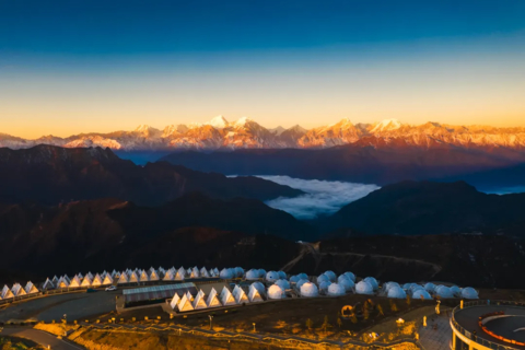 1、牛背山住宿可升级球形大帐篷独卫,如帐篷酒店满房的情况,我们则安排至:牛背山星铂酒店box房型,标间独卫。