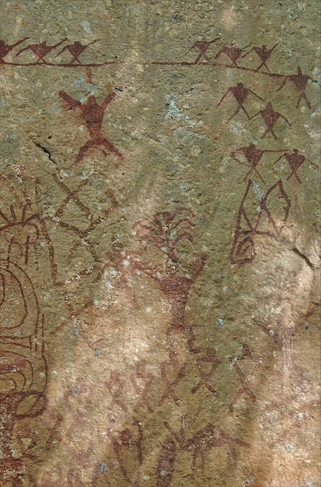 下午我们去沧源岩画,产生于3000多年前(新时期晚期),原始人以赤铁矿颜料绘制于石灰崖上