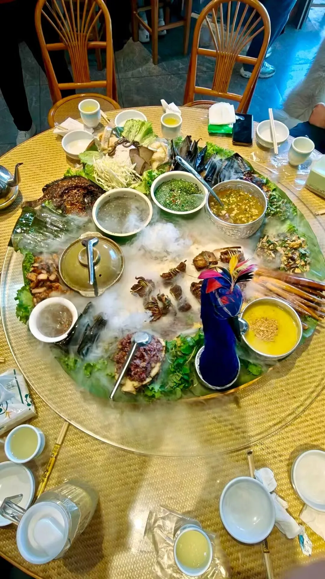 早上出发,咱们先去中缅边境村寨【一寨两国】,中午咱们去吃孔雀宴,下午到【莫里热带雨林】徒步一小段,然后去滇缅公路的终点畹町【畹町桥】,傍晚到银杏村住宿。