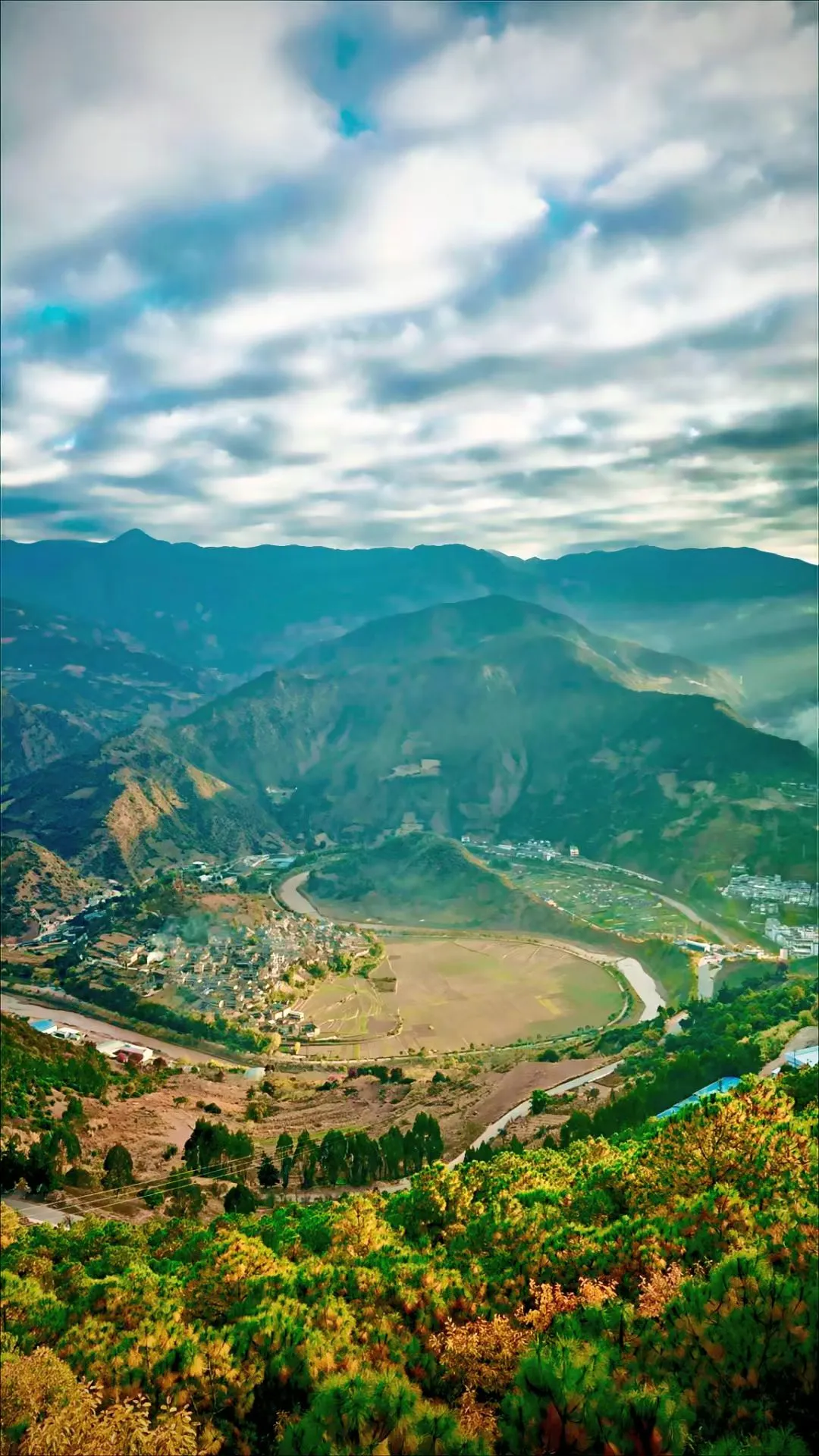 早上出发我们首先到达【太极锁水】,在诺邓河和澜沧江支流沘比江交汇处,绕了一个“S”型的弯,形成了类似道教“太极图”的奇妙天然景观,被当地人称之为太极锁水。