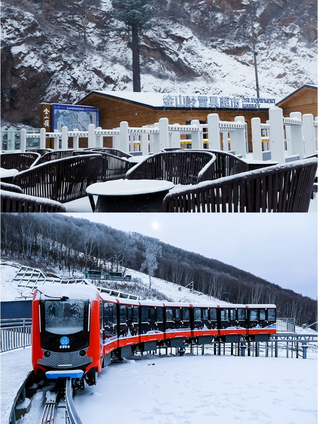 金山岭银河滑雪场首条齿轨列车——“银河号”雪国列车,为雪友畅滑提供便捷的同时引领滑雪新时尚,成为新雪季打卡新地标。“银河号”雪国列车起始站设置在雪滩区位置,终点站在二索下站,列车的开通将完美连接一索8人吊箱和二索6人吊椅,不仅节省时间放心畅滑,还可以在列车上欣赏冬日风景。完美连接一索二索