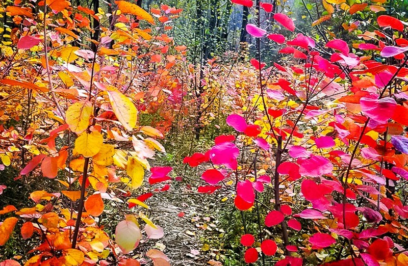 漫山的红叶、五彩的景色、绵绵的白桦林.....