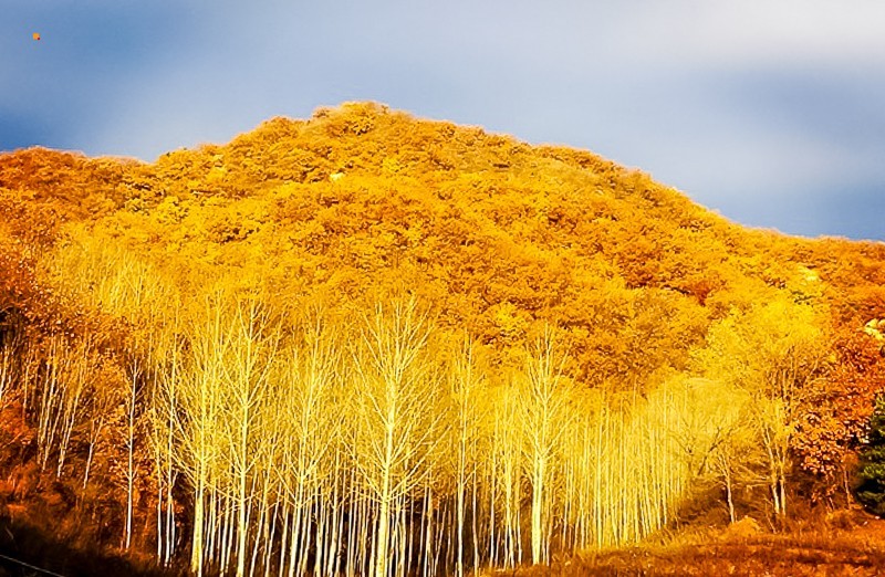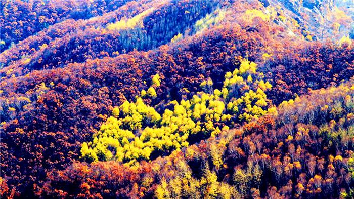 落叶松林苍劲妩媚秀丽,呈现出的是一片金黄。