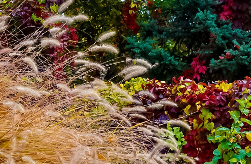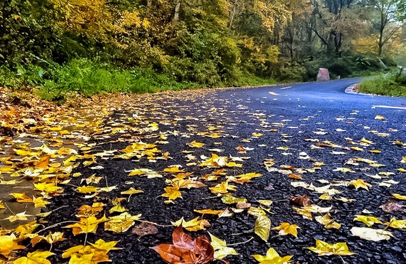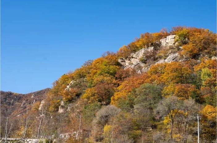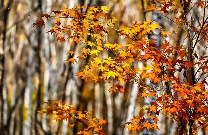 火红的枫叶、银白色的树干、金黄色的树叶,恍若置身于仙境之中;