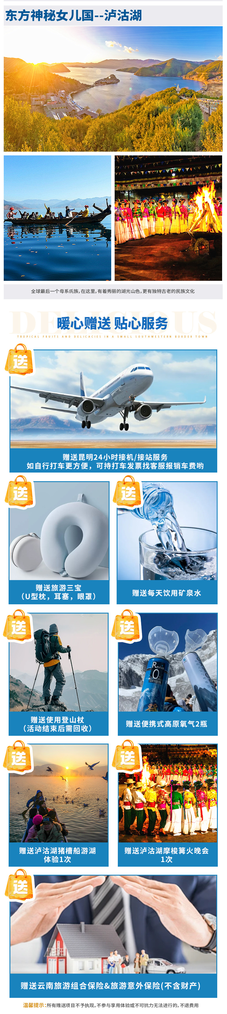 8、赠送云南旅游组合保险&旅游意外保险(不含财产)。