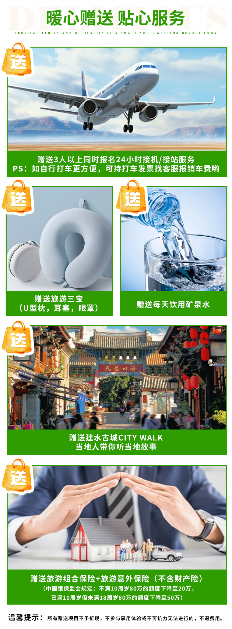 ▷交通:不包含各地到达昆明集散的往返大交通费用(如:机票和高铁火车票等,提前预定通常折扣都会很低);