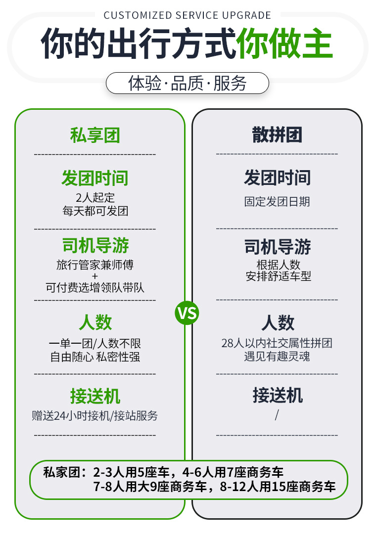 ①、拼团12人以内全程安排旅行管家兼师傅带队服务,管家会帮大家购买门票,给队友建议,简单讲解,无法提供专业讲解服务,敬请谅解;