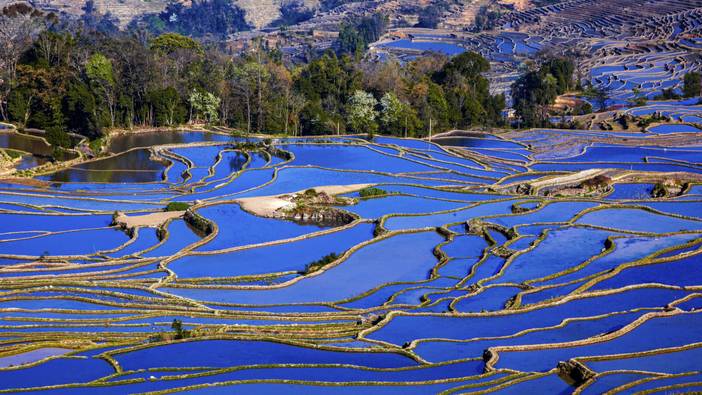 早起床统一前往日出最佳地【多依树】拍摄梯田日出,景区栈道有多层,均可拍摄梯田。拍摄完日出后,随后徒步前往因《无问西东》而出名的的阿者科村,这里不仅是观看云海的好地方,还是看蘑菇房的最佳地,一般游客都少有去到,这里保留了最原始的哈尼族村落的人文景色。之后前往【爱春】拍摄蓝色梯田,每年冬春交融季节,也是梯田的灌水期,层层叠叠的梯田倒映着天空的光景,成了众多国内外旅游摄影爱好都争相前往的圣地。