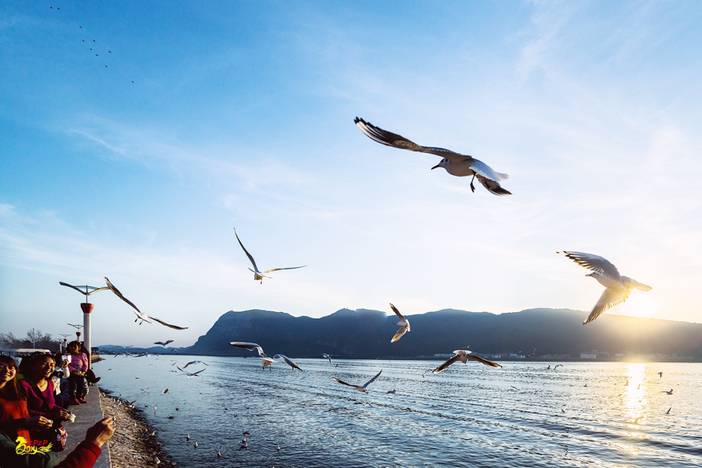 4、滇池海埂大坝,观景长廊,以开阔的湖景、壮观的红嘴鸥群和西山“睡美人”山景闻名,每年11月至次年3月,是最佳观海鸥胜地。