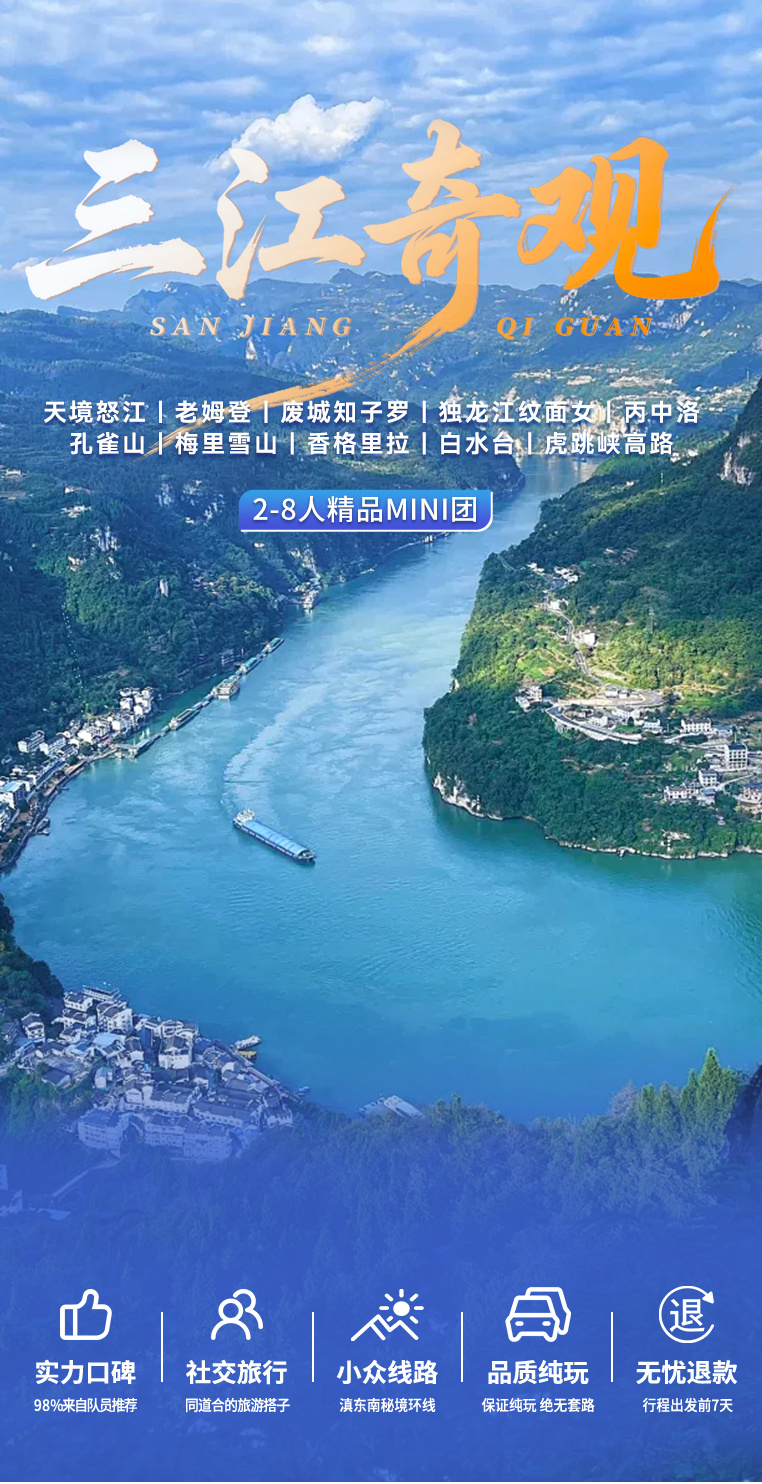 ▷集合地点:丽江/大理指定酒店(报三江奇观+名字入住);