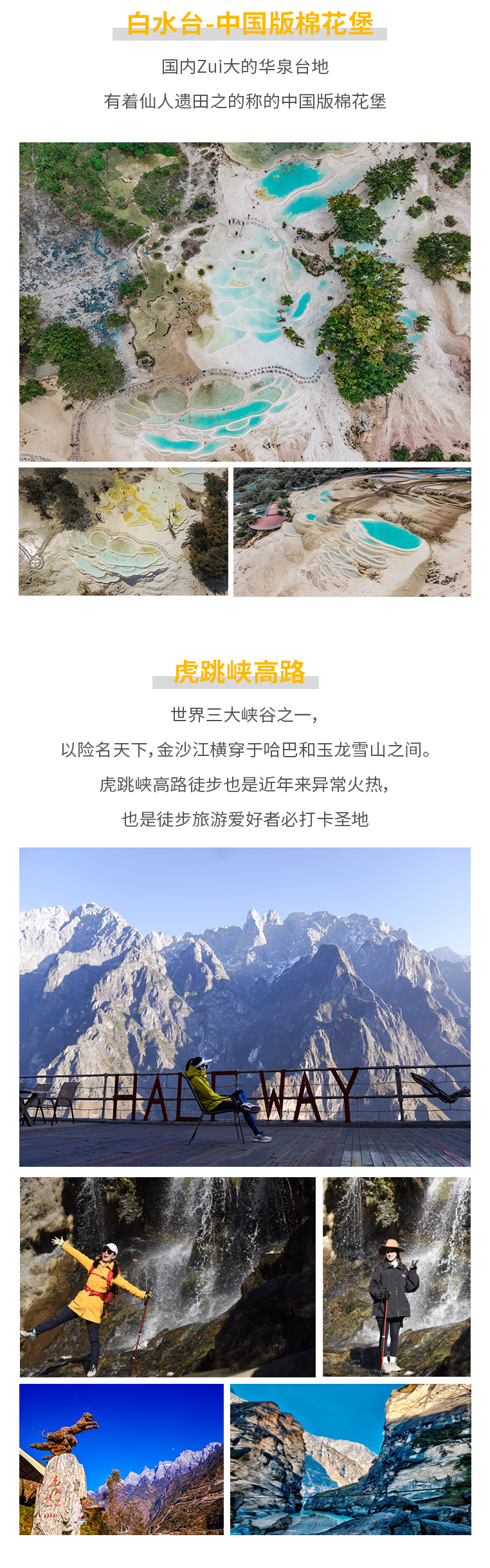 ▷交通:不包含各地到达丽江集散的往返大交通费用(如:机票和高铁火车票等,提前预定通常折扣都会很低);