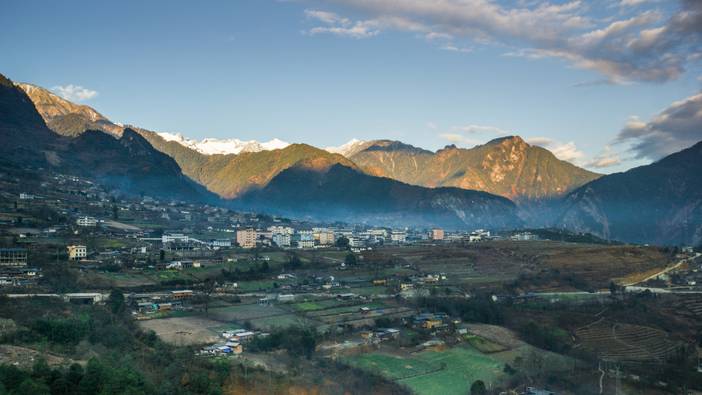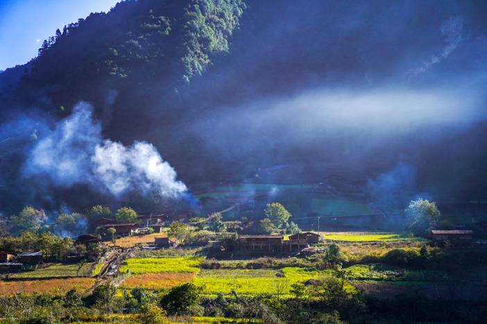 早餐后前往中国樶原生态的村寨,打卡丙察察段滇藏界,这里是云南跟西藏交界处,也是不允许外国人进入的一个地方。随后前往樶美生态村庄【秋那桶村】,徒步怒江边上古老的茶马古道,领略悬崖上的茶马古道,徒步抵达油画小村【雾里村】,随后乘车途经石门关离开丙中洛。跨越怒江大桥沿着德贡公路前往孔雀山,穿越峡谷和蜿蜒的山路,约1.5小时抵达孔雀山。