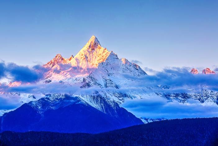 早上起来前往景区观景台观赏梅里雪山【日照金山】,当第一缕朝阳把【梅里雪山】主峰“卡瓦格博”染成了金色,那耀眼的金色让每个人心潮澎湃,内心震憾。观赏完日照金山后自行吃罢早餐驱车途经德钦县城后翻越【白马雪山】到达垭口,站在此处居高临下,美景尽收眼底。随后【金沙江月亮湾】,金沙江遭遇了一座浑圆的金字塔型山峰,金色的江水于是绕着山峰流出了一个标准的“倒Ω”形,这就是很多摄影作品中的金沙江大拐弯;