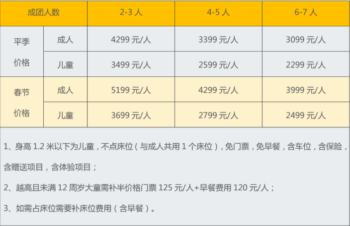 成人:3899元/人,儿童:2399元/人