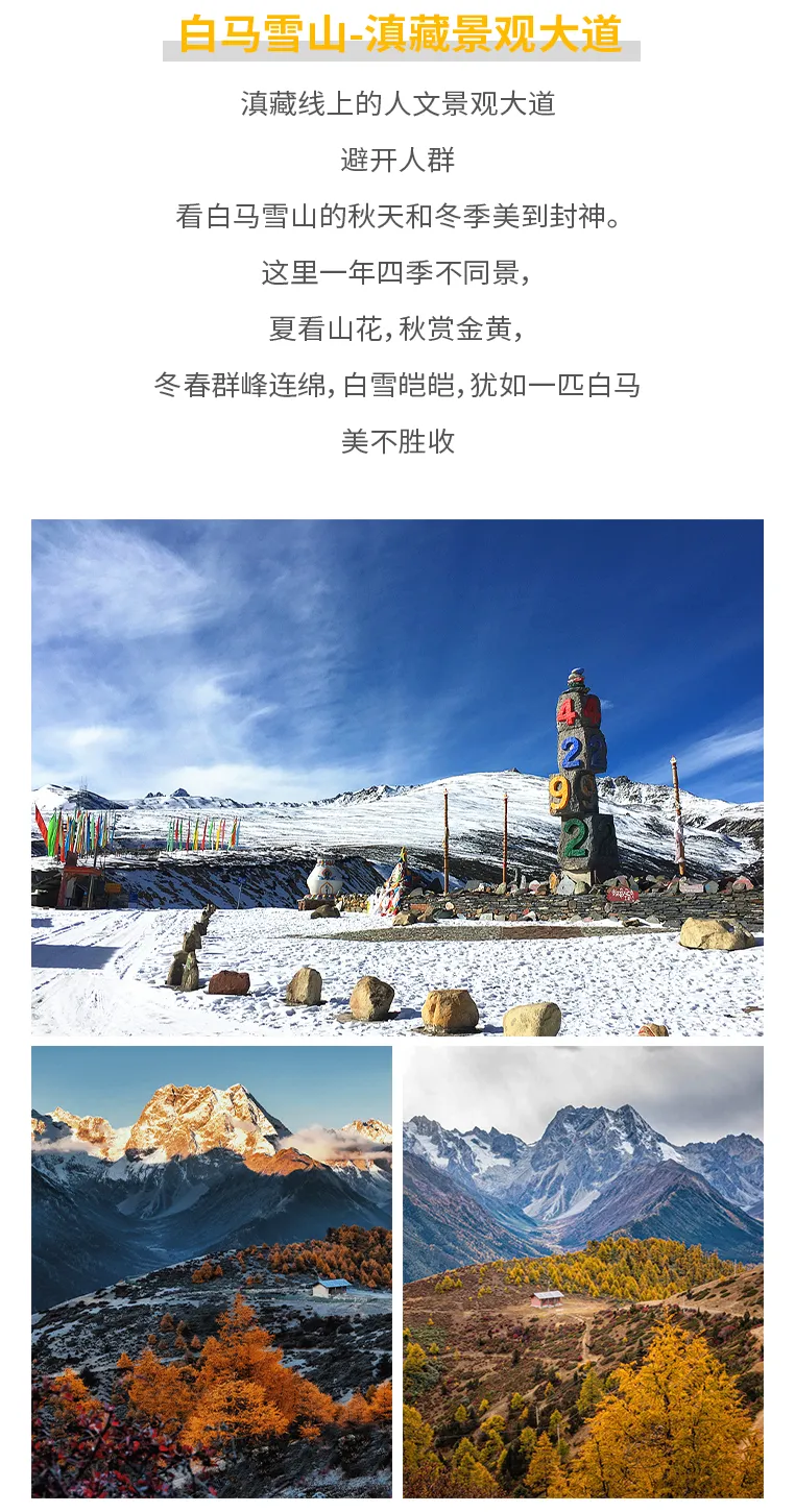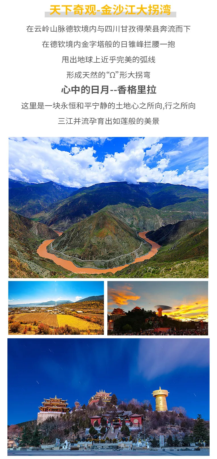 梅里金山→白马雪山→金沙江月亮湾→依拉草原纳帕海→独克宗古城