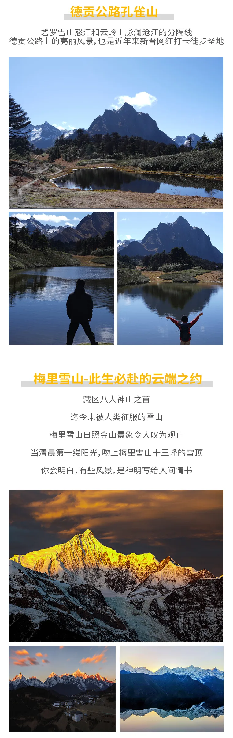 滇藏界→秋那桶→茶马古道→雾里村→孔雀山徒步→德钦飞来寺