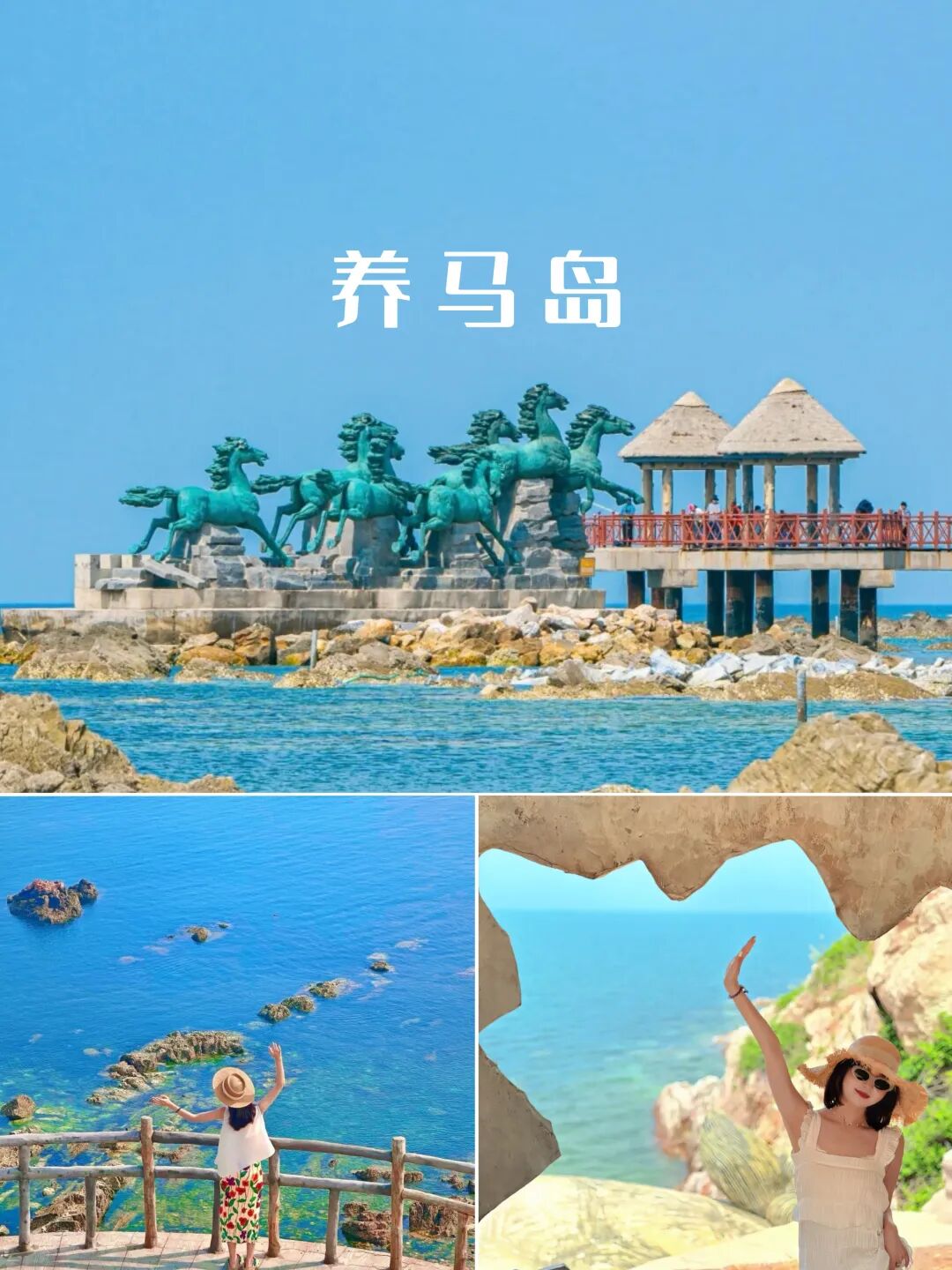 养马岛相传秦始皇东巡时在此饲养御马,并封为“皇家养马岛”,故而得此名。岛上有天马广场、赛马场、海滨浴场、海上世界、御笔苑等娱乐景点。大家可以自行租自行车/乘坐岛上摆渡车游览。