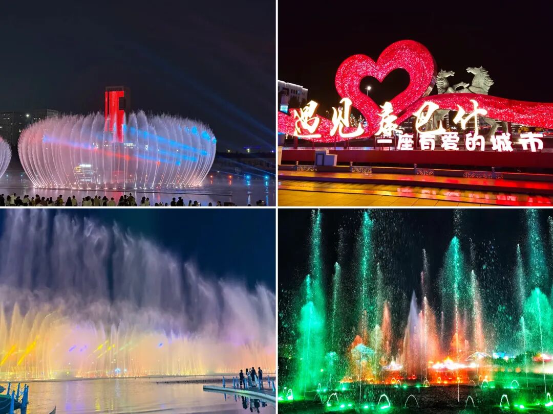 鄂尔多斯夜游天花板|亚洲最大免费音乐喷泉康巴什的音乐喷泉,亲眼见到还是会惊叹!号称亚洲最大,免费开放,每晚准时上演水幕光影秀,是来鄂尔多斯不可错过的夜晚体验。巴什音乐喷泉:擎天水幕直击天穹“209米水龙破空,激光撕碎夜幕——这才是草原的赛博朋克!”世界级震撼:亚洲最高喷泉擎天水柱直冲209米,激光水幕投影出成吉思汗策马图腾,水雾裹着霓虹扑脸瞬间,科幻片弱爆了!